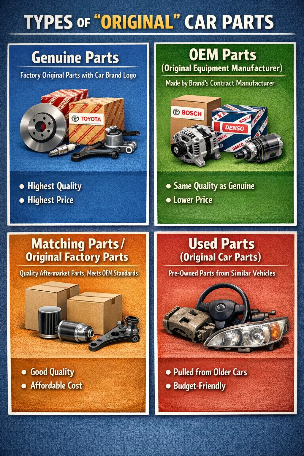 Kada se govori o "originalnim" dijelovima automobila, zapravo se koristi nekoliko različitih izraza. Iako mogu zvučati slično, u ustima mehaničara ili vlasnika trgovine autodijelova ovi različiti izrazi često predstavljaju različite cijene i podrijetlo ovih auto dijelovi .