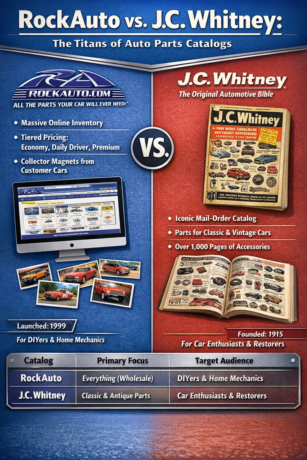 Kad ljudi pitaju o najpoznatijem katalogu autodijelova, dva imena dominiraju razgovorom: RockAuto za digitalno doba i J.C. Whitney za povijesni značaj. RockAuto je postao moderni zlatni standard, nudeći iscrpnu online bazu podataka koja pokriva gotovo sve automobilski dio proizvedenih u posljednjih nekoliko desetljeća. Za one koji se sjećaju ere papirnatih kataloga koji su se naručivali poštom, J.C. Whitney bio je neprikosnoveni kralj, poznat kao "Biblija" u automobilskom svijetu DIY.